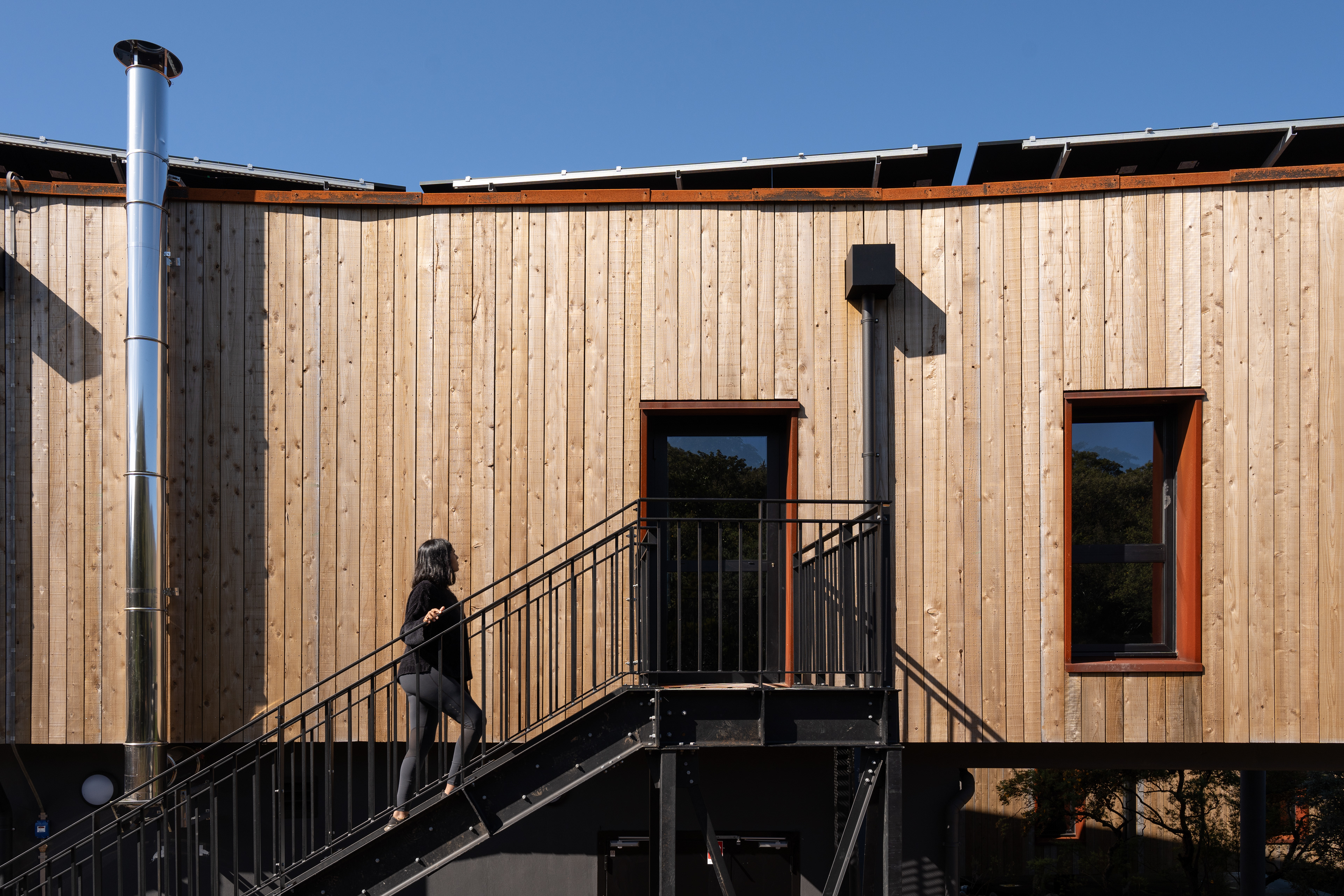 Arrimé à la pente du site, le nouveau gîte du Volcan propose une réinterprétation architecturale du phénomène des pãhoehoe, épaisses cordées de lave basaltique qui s’épanchent et se figent en bourrelets sinueux en aval des volcans. Le plissement caractéristique qui en résulte, nous inspire ce triptyque de courbes ondoyantes, libres et solidaires à la fois, modelé selon la topographie, au gré des courbes de niveau.
